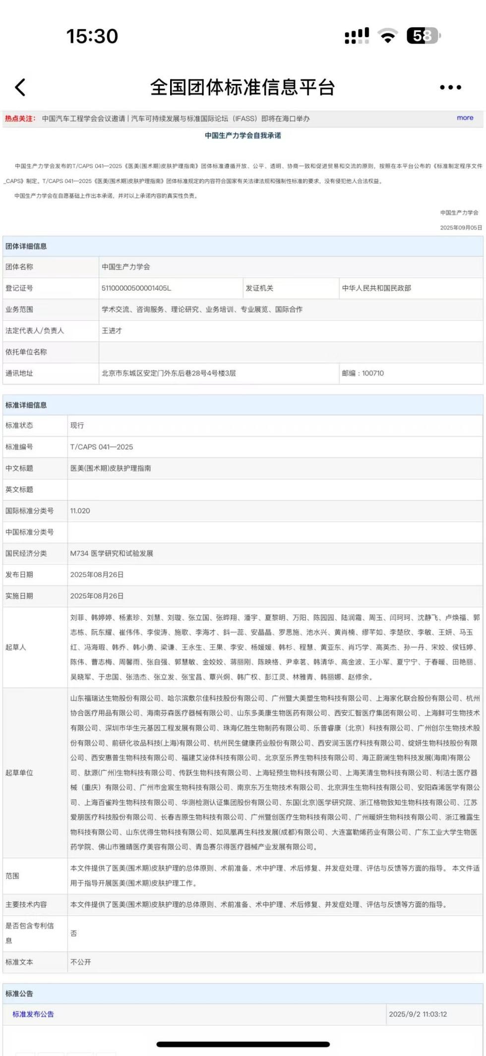 Le 26 août 2025, la norme du groupe « Lignes directrices pour les soins de la peau en esthétique médicale (période périopératoire) » (numéro de norme : T/CAPS 041 - 2025), rédigée conjointement par la China Productivity Society et plusieurs entreprises leaders du secteur, dontQingdao Saildar Medical Device Industry Development Co., Ltd., a été officiellement publié et mis en œuvre. Cet événement marque une étape clé dans la normalisation de l'industrie de l'esthétique médicale de mon pays et insuffle également une forte dynamique au développement de Qingdao Saildar Medical Device Industry Development Co., Ltd.